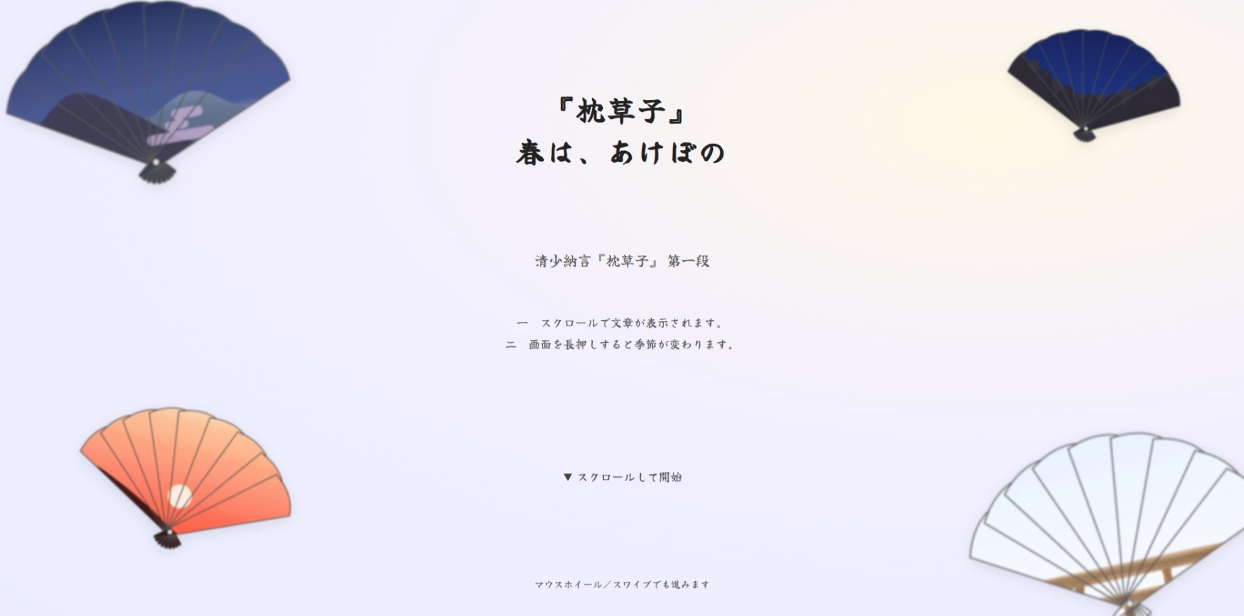清少納言が書いた『枕草子』から、「春は、あけぼの」を取り上げた作品です。 本文とともに、内容に合わせたイラストやアニメ…
