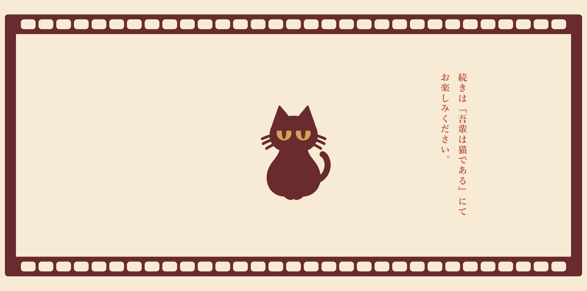 夏目漱石が書いた『吾輩は猫である』の冒頭部分をスクロールテリングで楽しめる作品です。 「吾輩は猫である。名前はまだ無い。」 この文章は非常に有名です。 そのあとに続く言葉はなんでしょうか。 「吾輩」は、如何にしてあの家を住家と定めたのでしょうか。 この作品では、「吾輩」が住家を決めるまでの一連の流れを読むことができます。 名前は知っているけれど、あるいは冒頭の文章は知っているけれど、それ以上は知らない。 そんな方にも読んでほしい、面白い作品です。 この作品は、スクロールで話を読み進めることができます。 下にスクロールすることで進み、上にスクロールすることで戻ることができます。 物語の内容に合わせて、画面も移り変わっていきます。 ぜひお楽しみください。