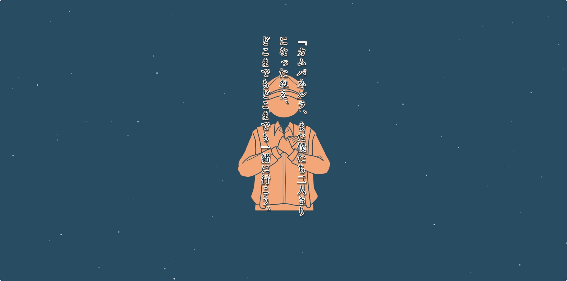 宮沢賢治が書いた『銀河鉄道の夜』の中で、銀河鉄道の旅の最後、 カンパネルラが消えるシーンをスクロールテリングで読むことができます。 「ほんとうのさいわい」について語るジョバンニとカンパネルラの会話や、 カンパネルラと同じものを見ることがかなわないジョバンニなど、 見どころがたくさん詰まっています! 名前は知っているけれど、ちゃんと読んだことはないかも……という方にも、 イラスト付きの演出で気軽に手を取ってもらえる作品です。 ぜひ、お楽しみください!